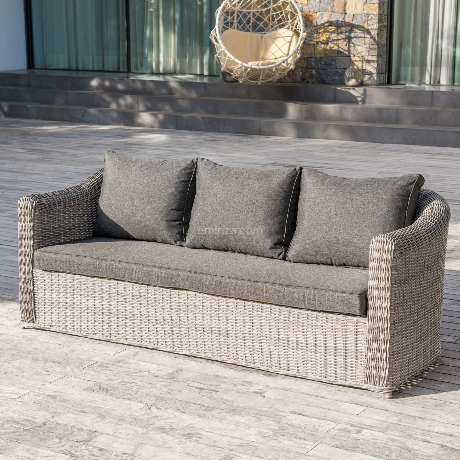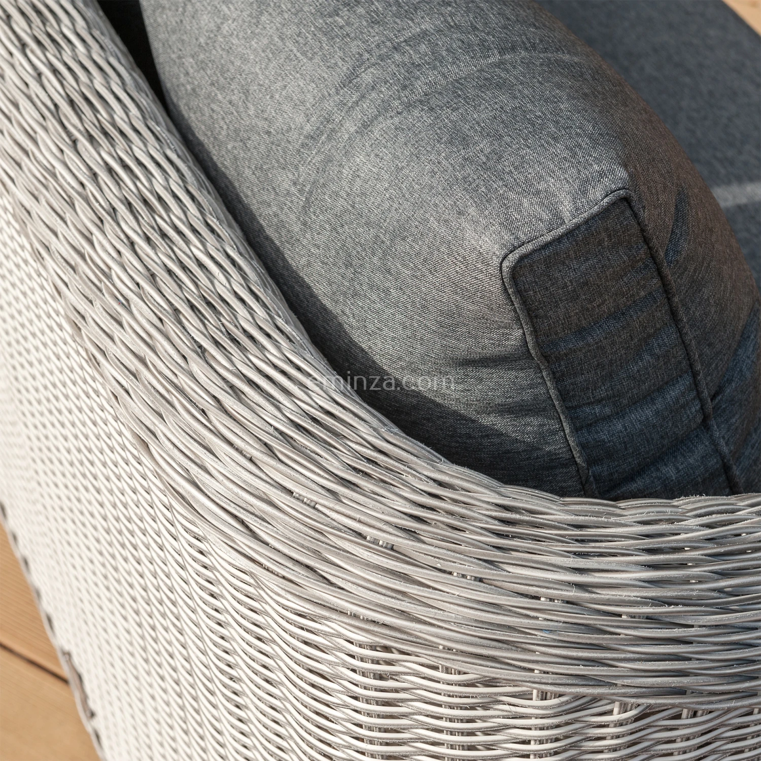 Couleur : résine gris clair et coussins gris foncé.