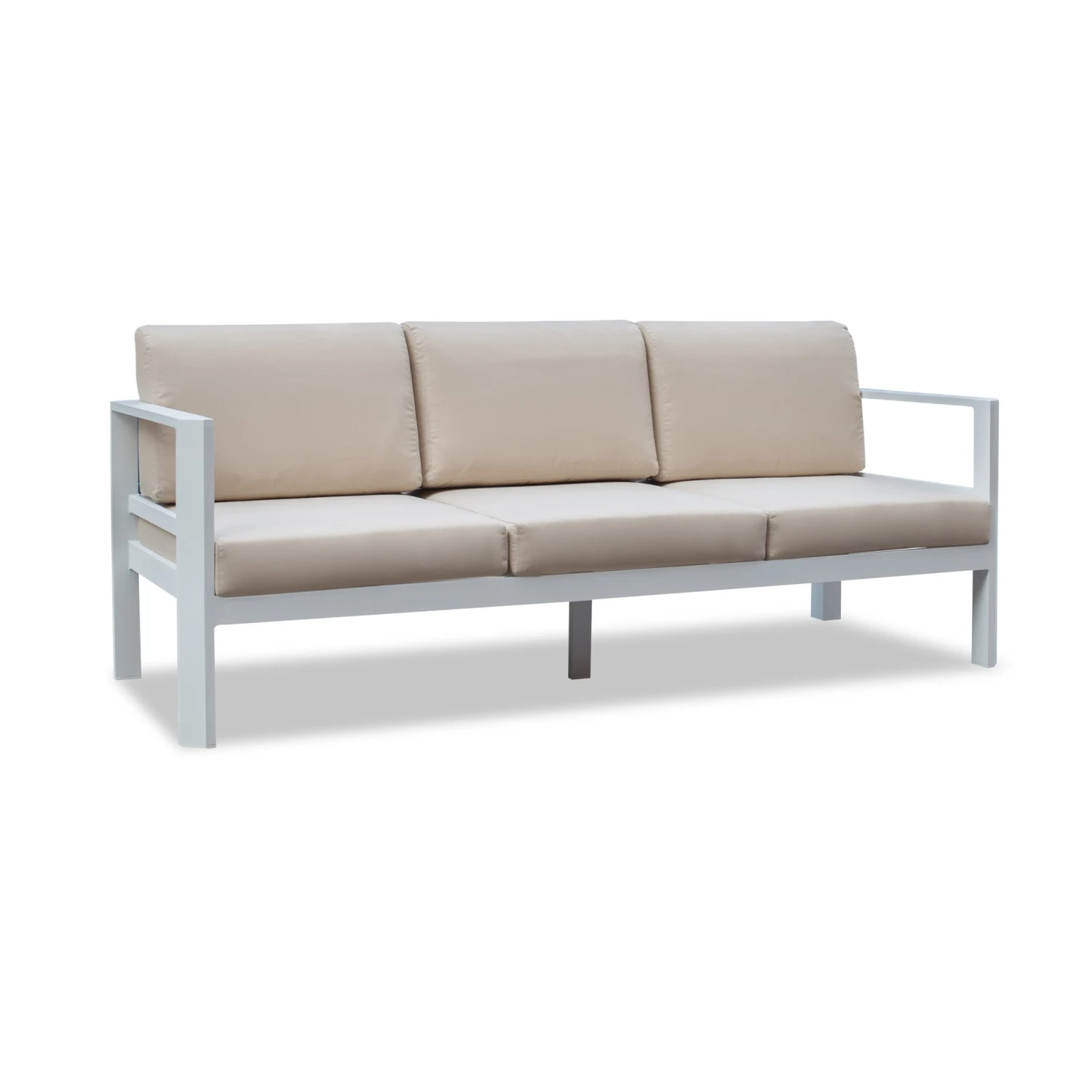 Couleur : blanc et coussins taupe. Poids maximum supporté : 360 kg.