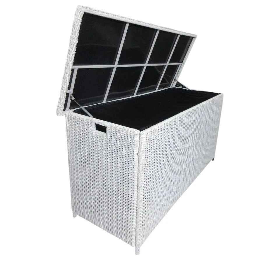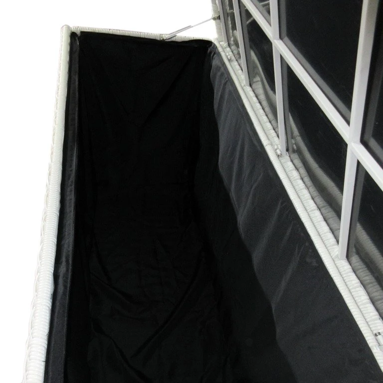 Grâce Ă la grande capacitĂ© de ce coffre, vous allez pouvoir ranger tous les coussins de votre salon de jardin Calvi 7 places. De plus, son panneau en plastique et sa housse en polyester entièrement refermable, empĂŞcheront l’eau de s’inflitrer. Pratique, il est muni de roulettes, d’une poignĂ©e sur le cĂ´tĂ© et s’ouvre sur le dessus.