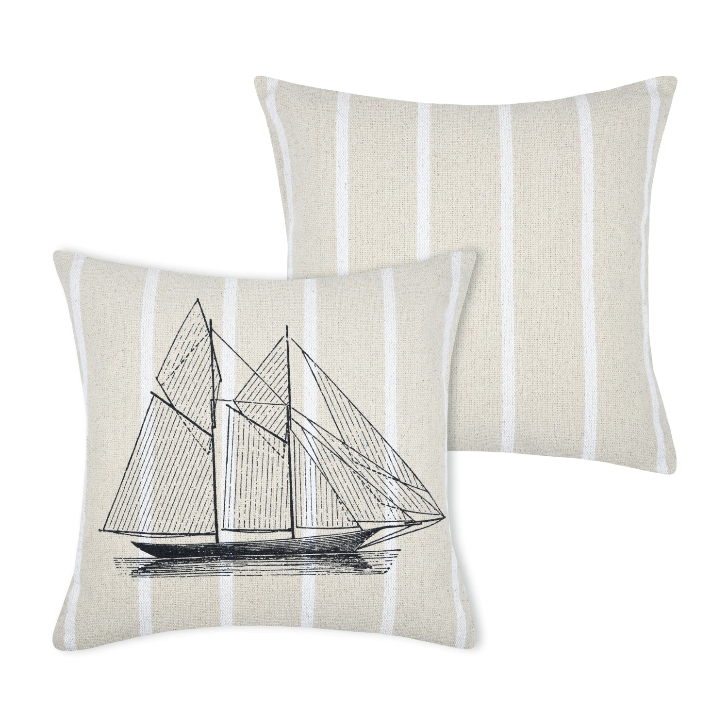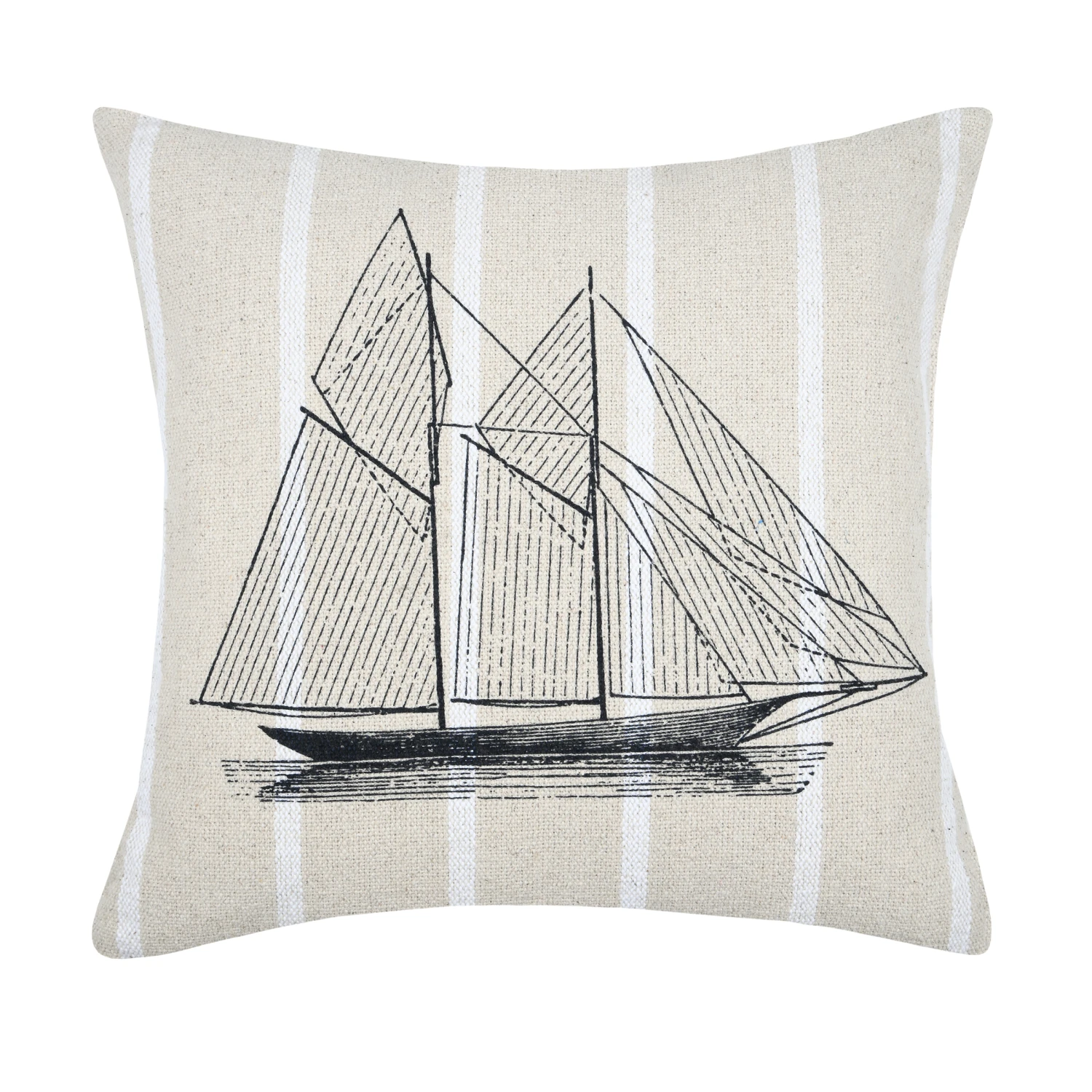 Ce coussin déco bord de mer, orné d’un motif délicat de voilier, est parfait pour créer un coin détente à votre extérieur.