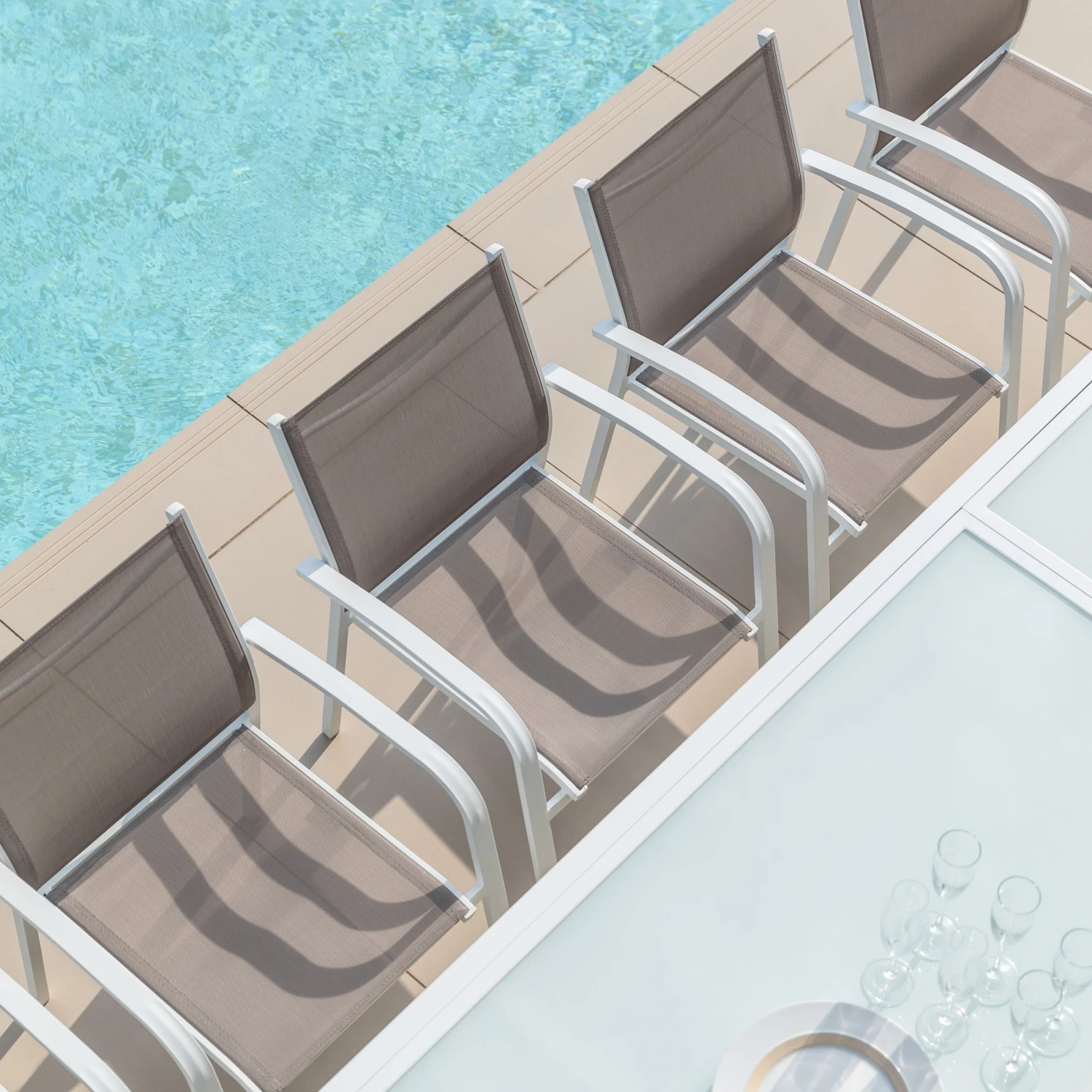 Pratique car empilable, le fauteuil Murano se range et se stocke très facilement. Il vient compléter l’ensemble salon de jardin Murano.