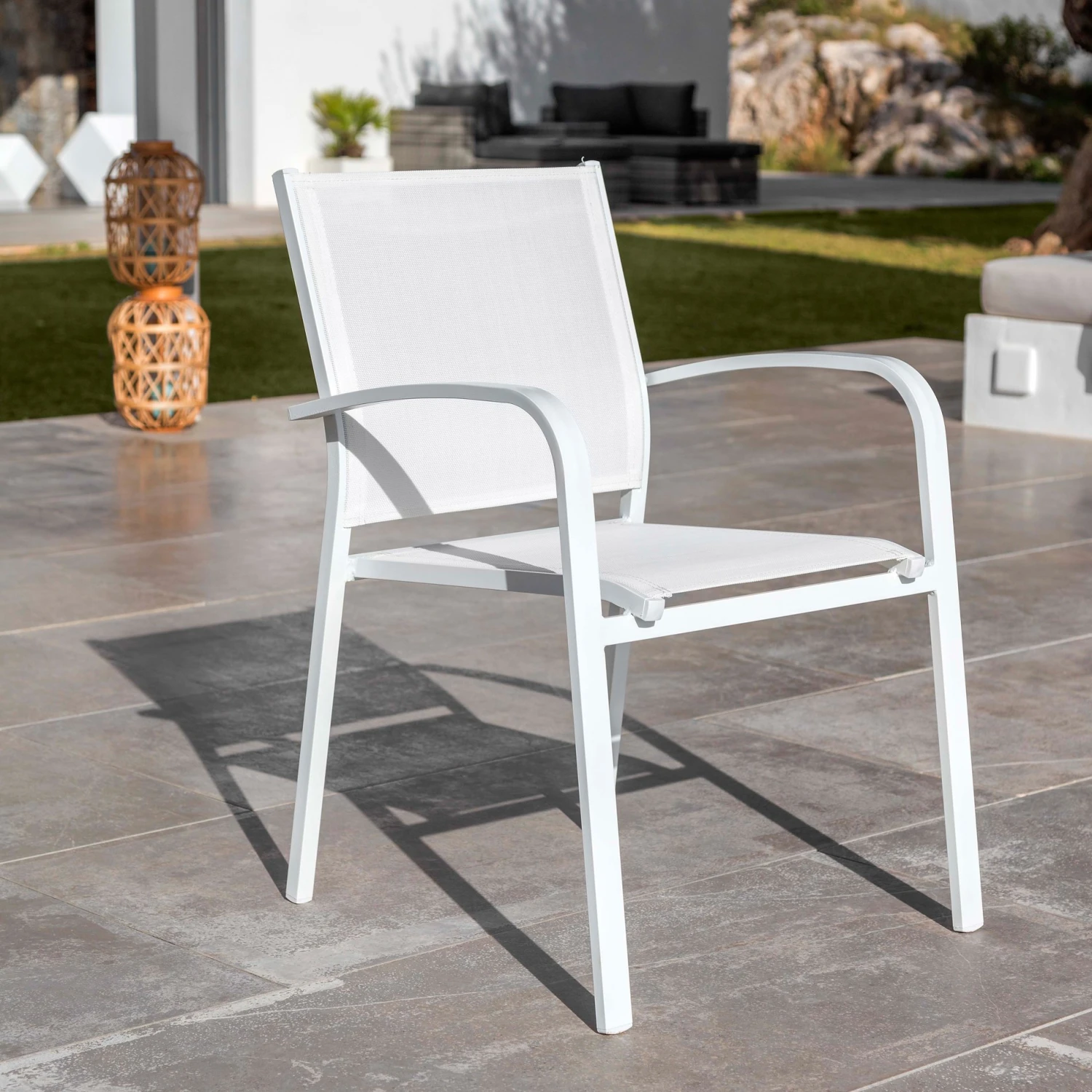 Pratique car empilable, le fauteuil Murano se range et se stocke très facilement. Il vient complĂ©ter l’ensemble salon de jardin Murano.