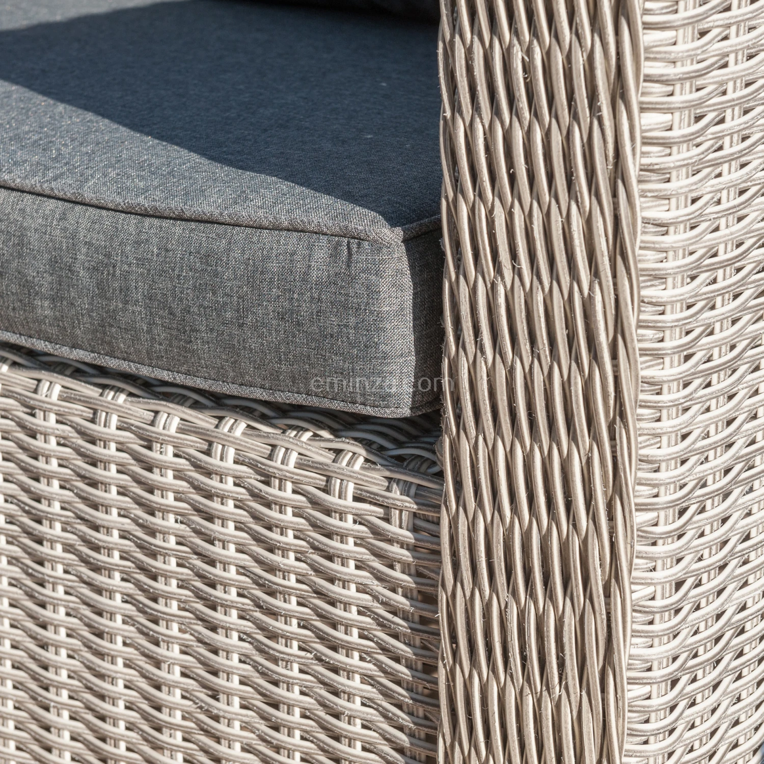 Le plus produit : Une grande qualité de conception ! Sa structure en aluminium traité époxy est garantie antirouille et ses finitions en résine tressée (demi-lune) lui offrent une résistance optimale aux rayons UV.