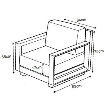 – Coussin d’assise : longueur 64 x profondeur 81 x hauteur 19 cm.