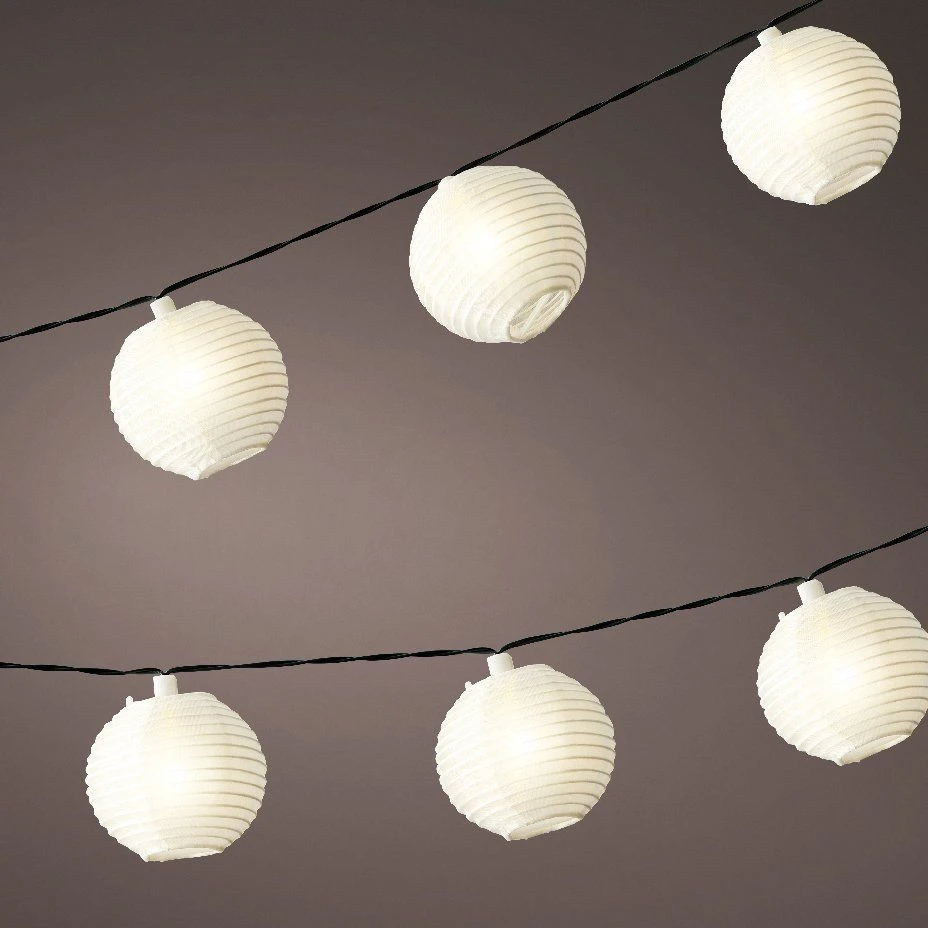 Cette guirlande solaire composée de 10 petites lanternes chinoises blanches à LED. Elle s’allumera automatiquement à la tombée de la nuit.