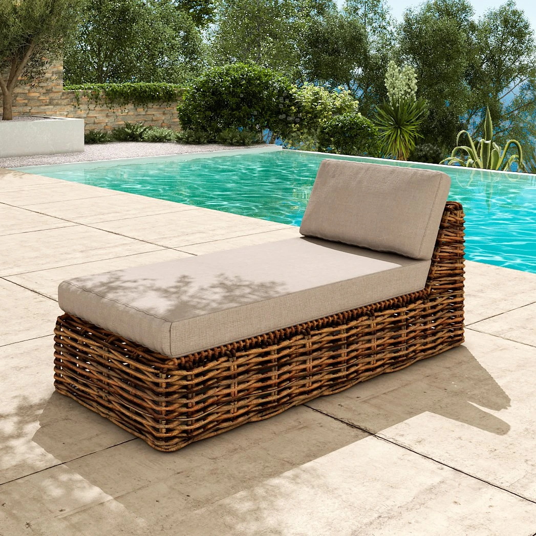 Distinguez-vous avec cette méridienne exotique et pleine de charme en rotin. Vous souhaitez accueillir plus de personnes ? Optez pour le canapé de jardin et chauffeuse assortis.