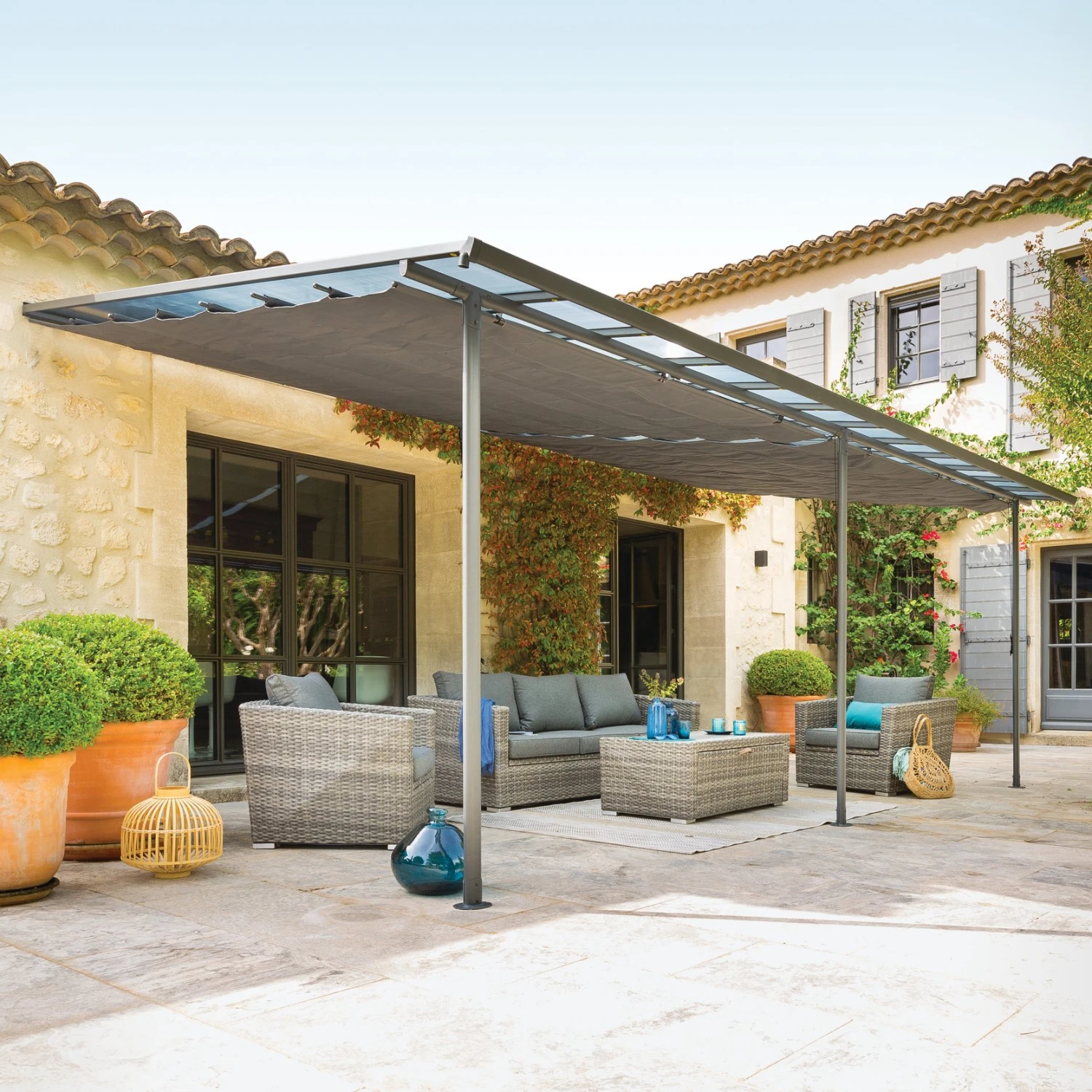 L’installation de tonnelle ou pergola peut être soumise à une demande préalable d’autorisation de travaux ou de permis de construire. Pour plus d’informations renseignez-vous auprès de votre mairie.