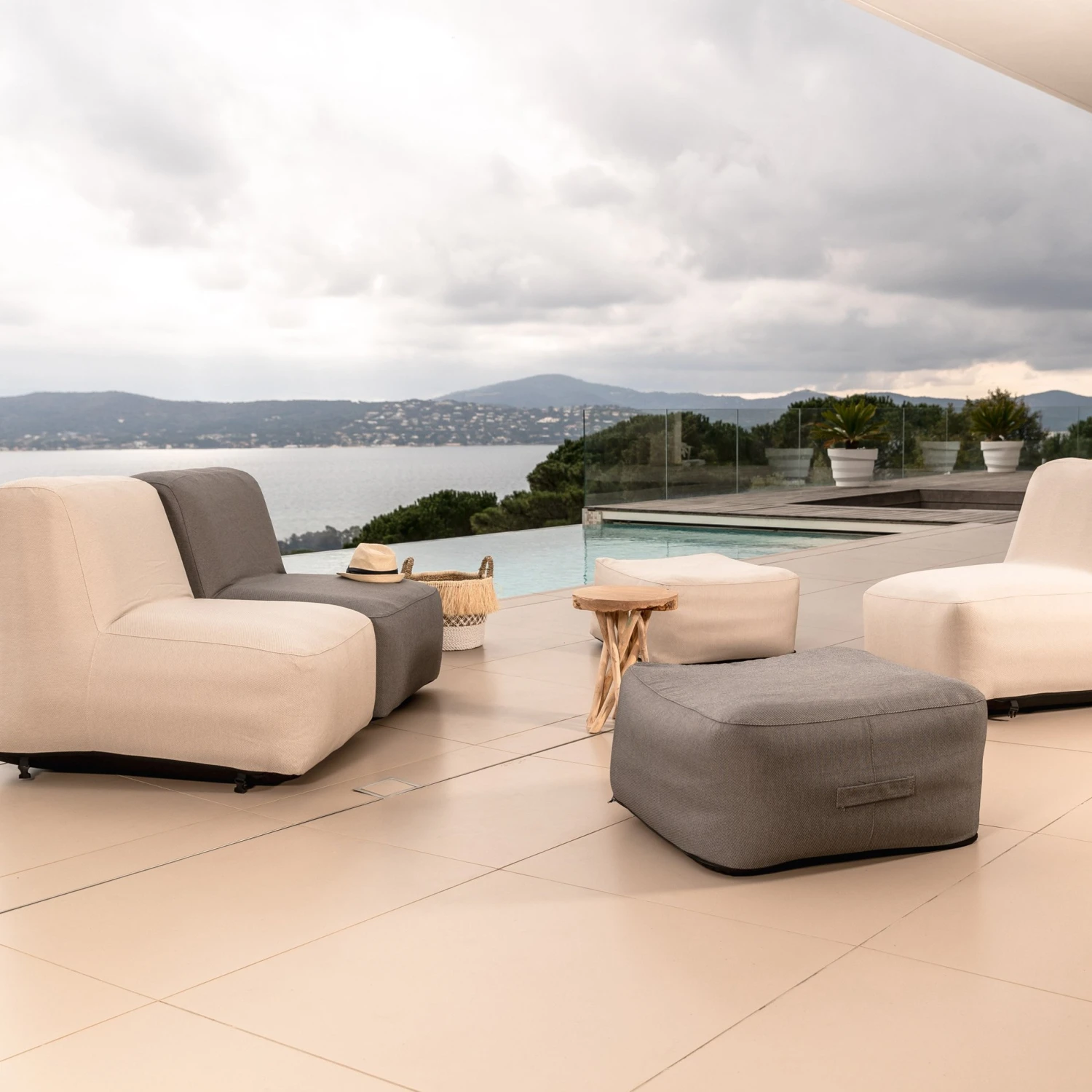 Créez un petit coin détente original avec ce pouf gonflable. Accompagnez-le du fauteuil de jardin gonflable et d’une petite table basse pour avoir un joli salon de jardin unique.