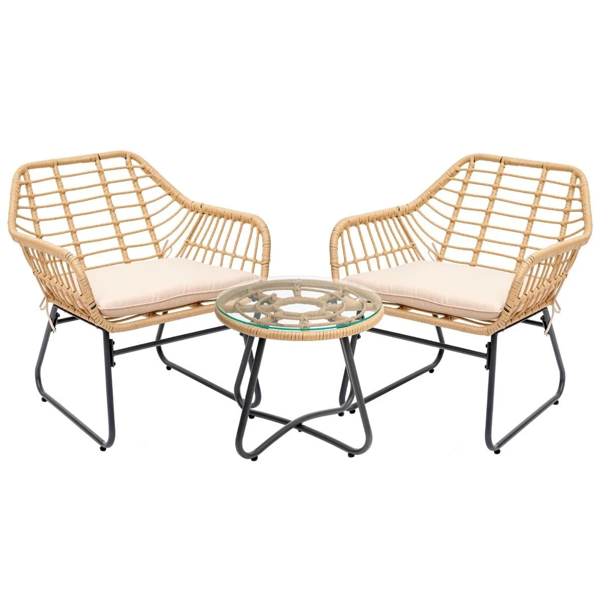 Il comprend : 2 fauteuils 1 place et une table basse.