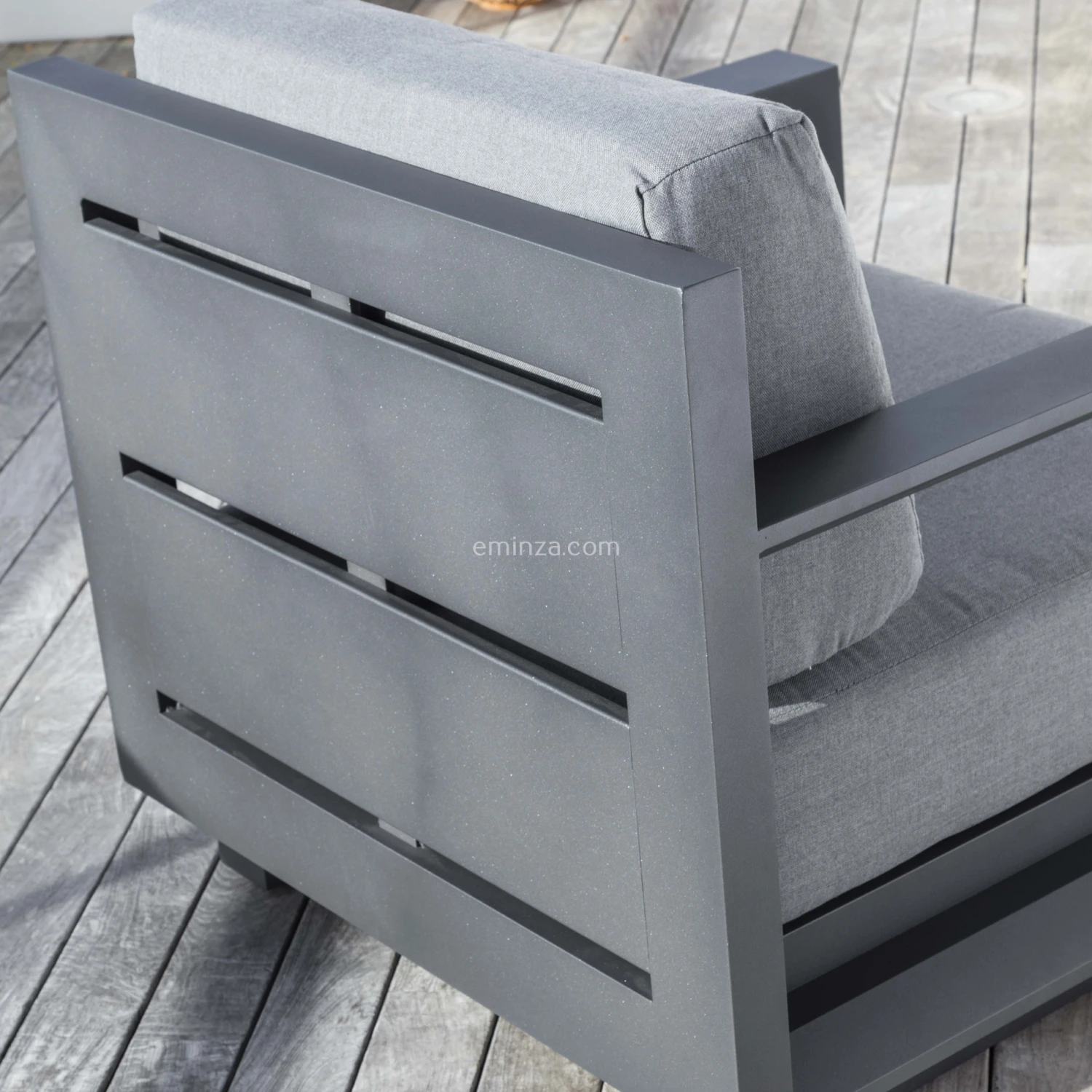 – Coussins : déhoussables et déperlants en oléfine (280 gr/m²). Densité : 25kg/m3.