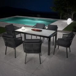 Table De Jardin 6 Places Aluminium/Céramique Modena (150 X 75 Cm) – Gris Anthracite/Gris Clair