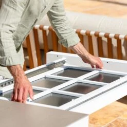 Table De Jardin Extensible 8 Places Aluminium Effet Bois Murano (180 X 90 Cm)- Blanche