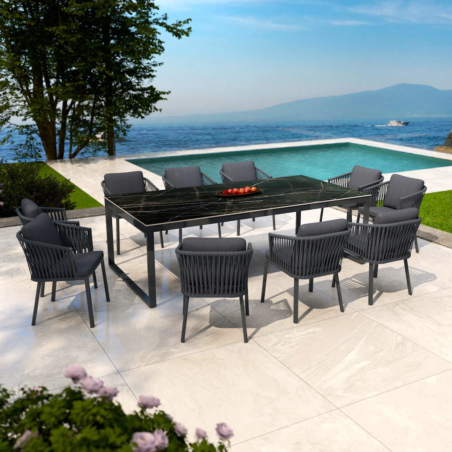 Craquez pour les lignes épurées et le design actuel de la table de jardin Kore. Vos invités vont adorer se retrouver avec vous autour de cette table très chic. Sa structure en aluminum et son plateau en céramique vont vous séduire à coup sur.