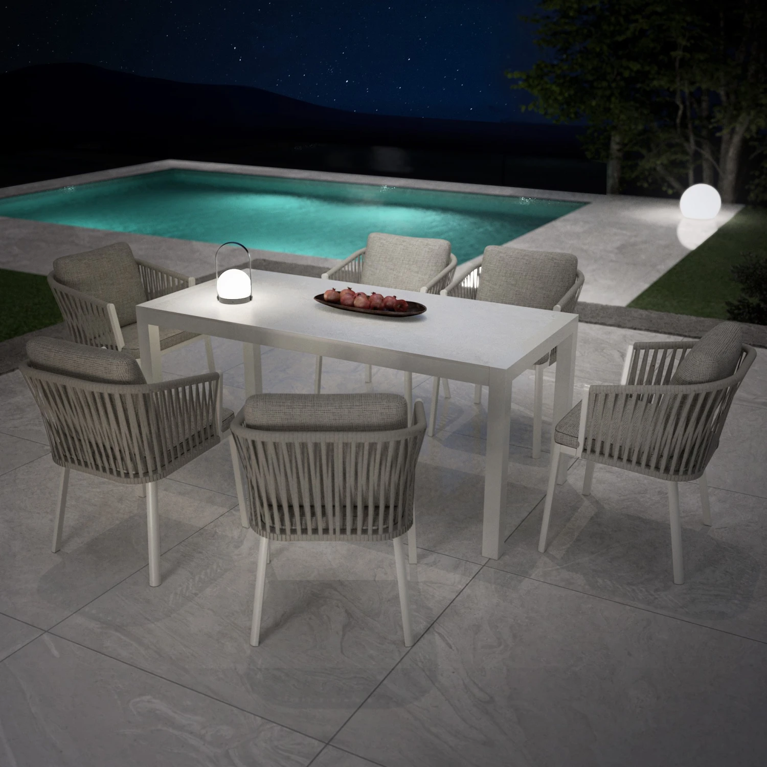 La table de jardin Modena est magnifique avec ses couleurs chics et son plateau en céramique style marbre. Cette table sera magnifique sur votre terrasse et vous promet de faire son effet auprès de vos invités.