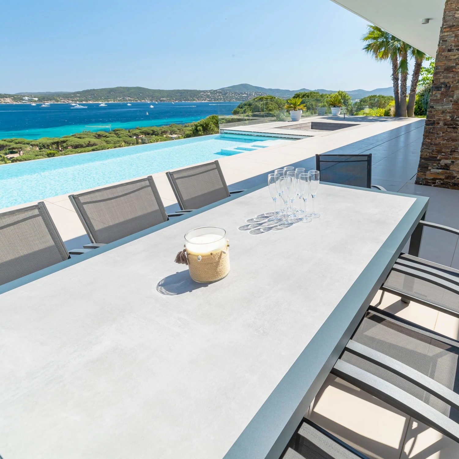 Partagez des repas conviviaux avec vos proches autour de la table de jardin Torano. Conjuguez design et praticité ! Son mix de matières tendances apporte une touche de modernité à l’ensemble, elle s’inscrira avec élégance dans tous types d’extérieurs.