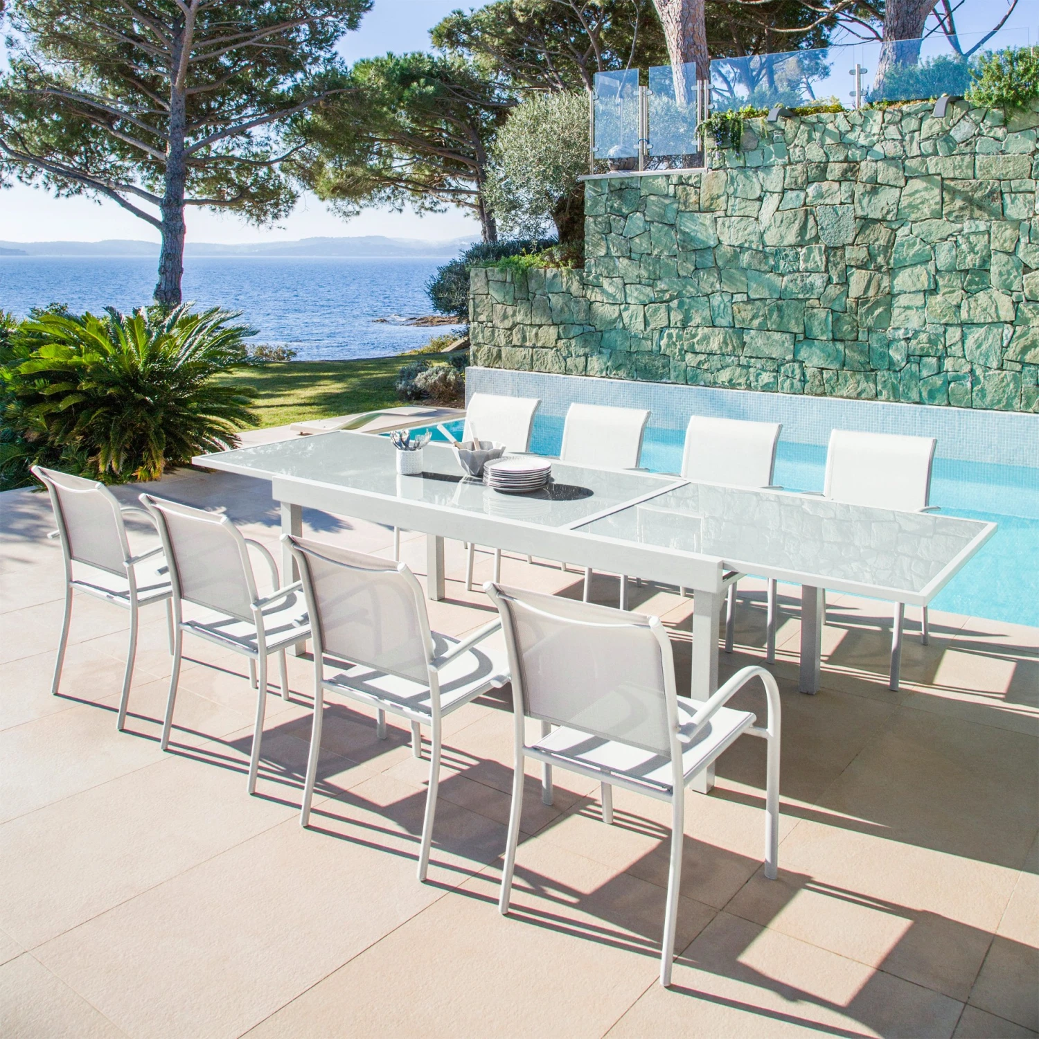 Vous recherchez une table de qualité à la fois légère et résistante pour vos repas estivaux ? Extensible ou fixe, rectangulaire, ronde ou carrée, la table Murano est sans aucun doute la table qu’il vous faut. Toute une gamme fonctionnelle et pratique pour passer d’agréables moments en famille ou entre amis. Ses finitions impeccables en aluminium donneront un style contemporain à votre extérieur.