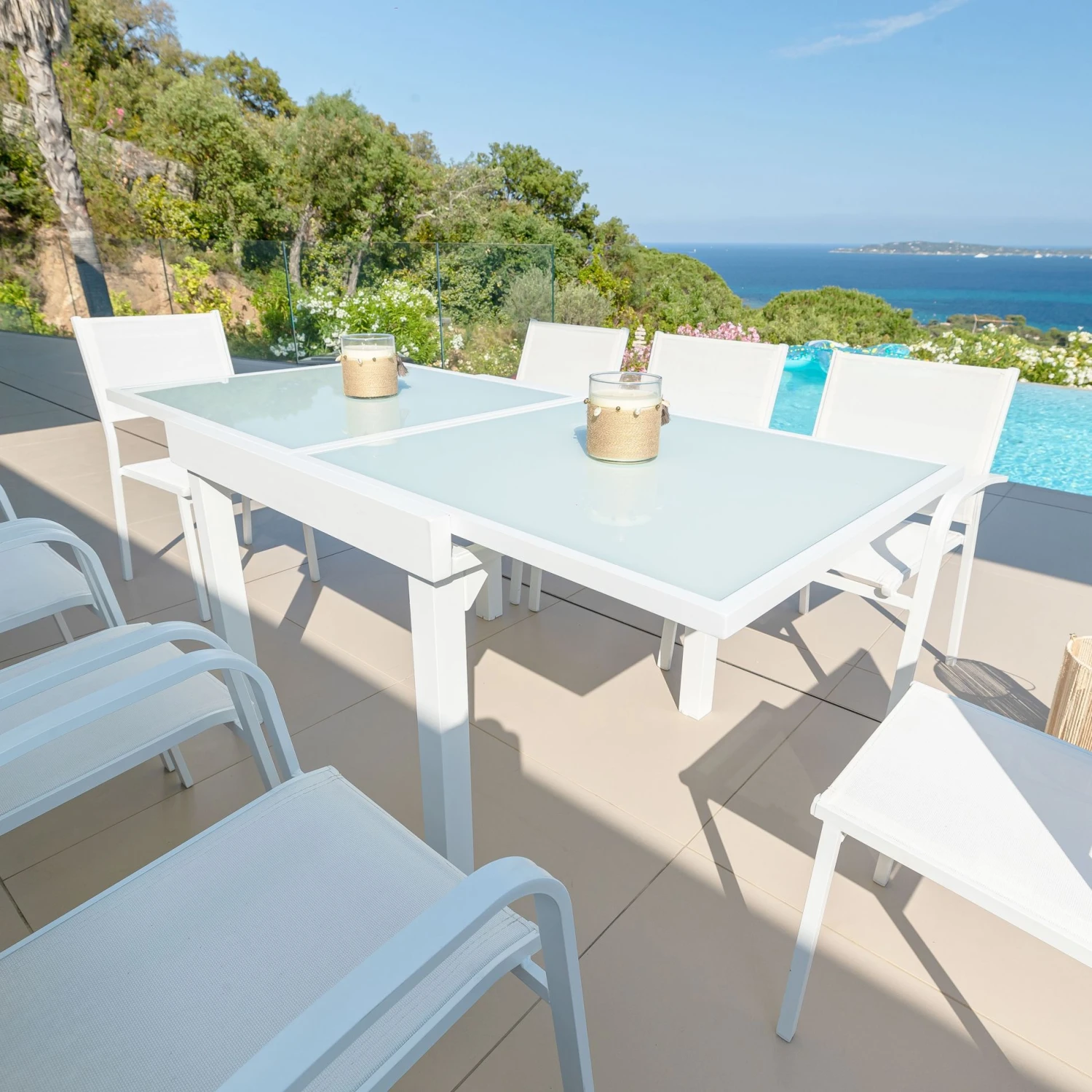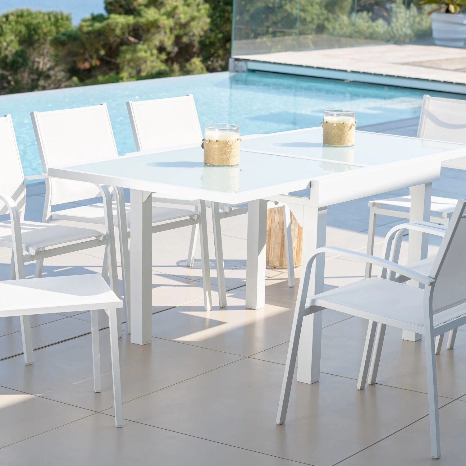 Vous recherchez une table de qualité à la fois légère et résistante pour vos repas estivaux ? Extensible ou fixe, rectangulaire, ronde ou carrée, la table Murano est sans aucun doute la table qu’il vous faut. Toute une gamme fonctionnelle et pratique pour passer d’agréables moments en famille ou entre amis. Ses finitions impeccables en aluminium donneront un style contemporain à votre extérieur.