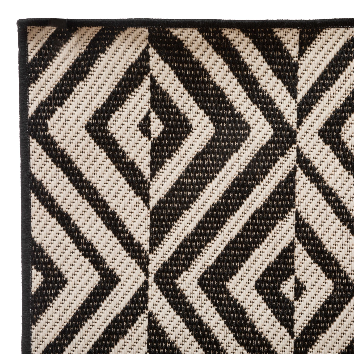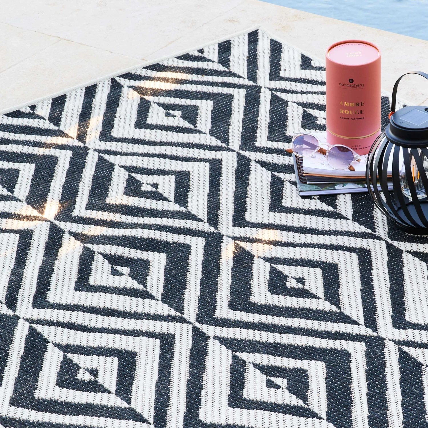 Ce joli tapis noir et blanc aux motifs ethniques sera magnifique sur votre terrasse. Mis avec votre salon de jardin il vous donnera envi de profiter au maximum de votre extérieur aussi bien décoré.