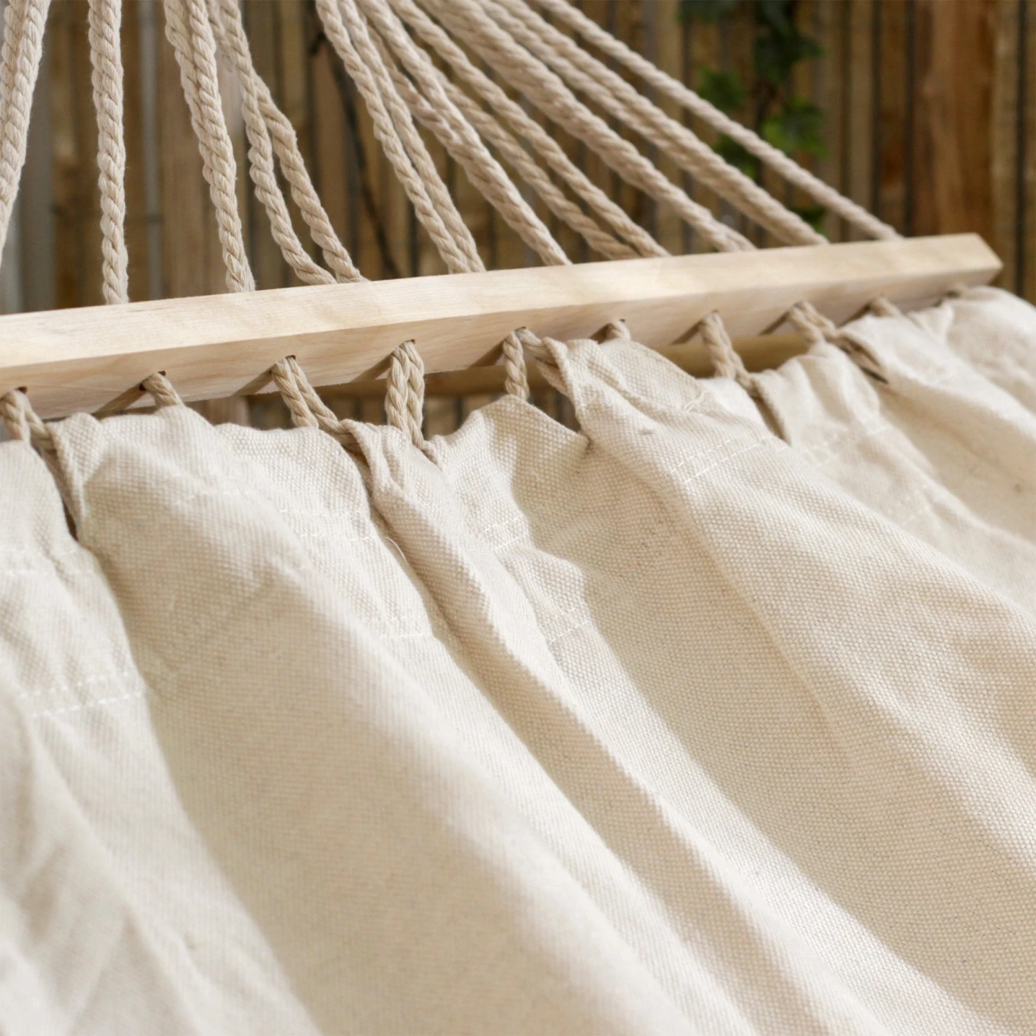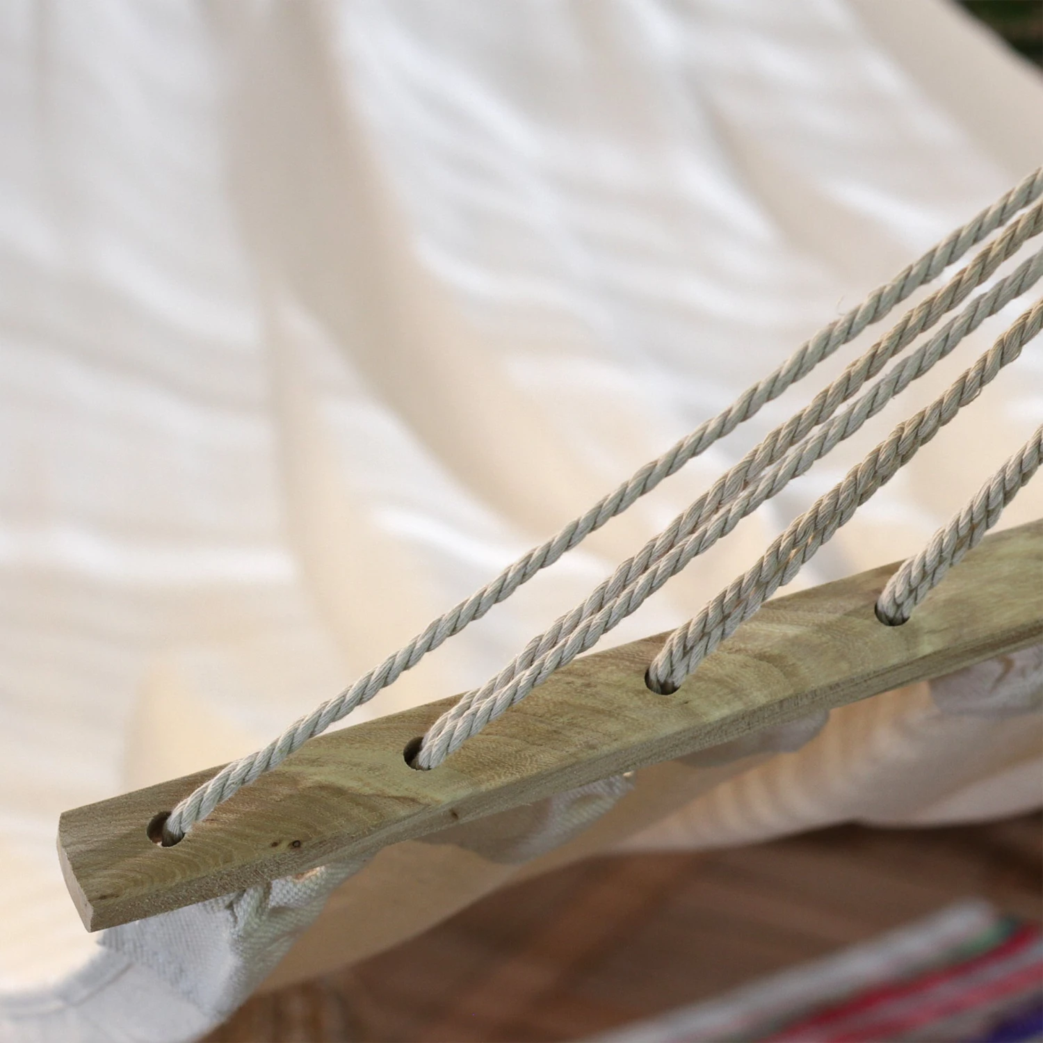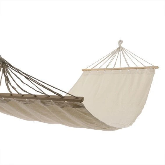 Lové(e) dans ce hamac, profitez des siestes estivales ! Ses cordes d’accrochage répartissent parfaitement la charge et garantissent votre confort.