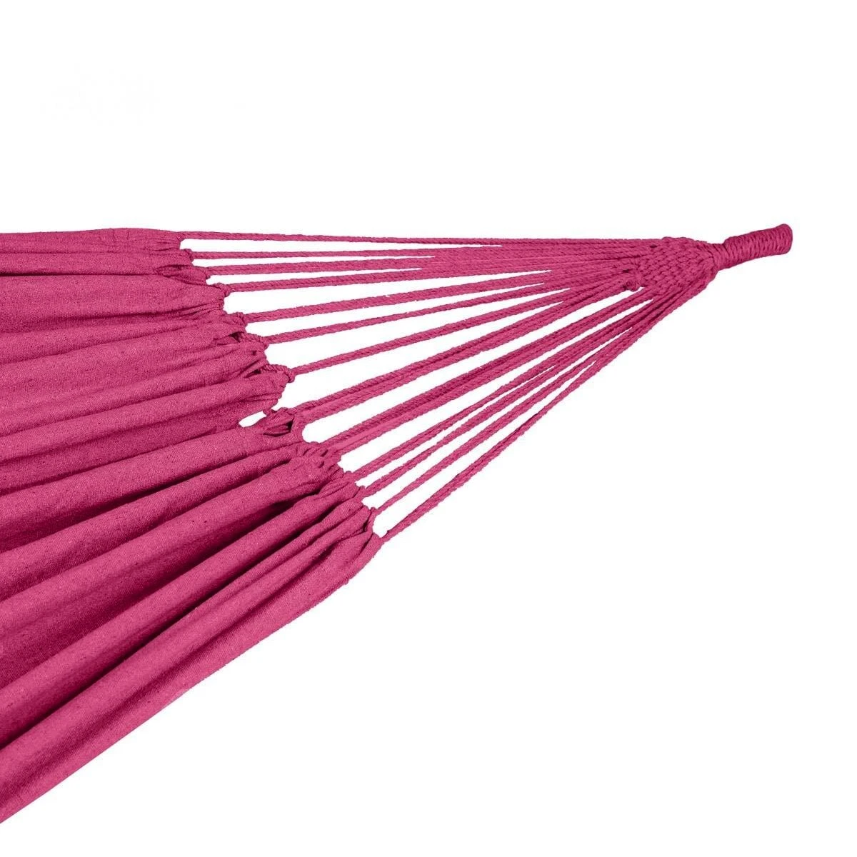 Installez-vous confortablement dans le hamac Yaqui en coton et polyester et profitez d’un moment de calme dans votre jardin.