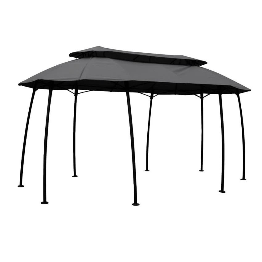 La toile est équipée d’oeillets pour éviter la stagnation de l’eau. Son double toit permet la circulation de l’air dans la tonnelle et une diminution de la prise au vent.