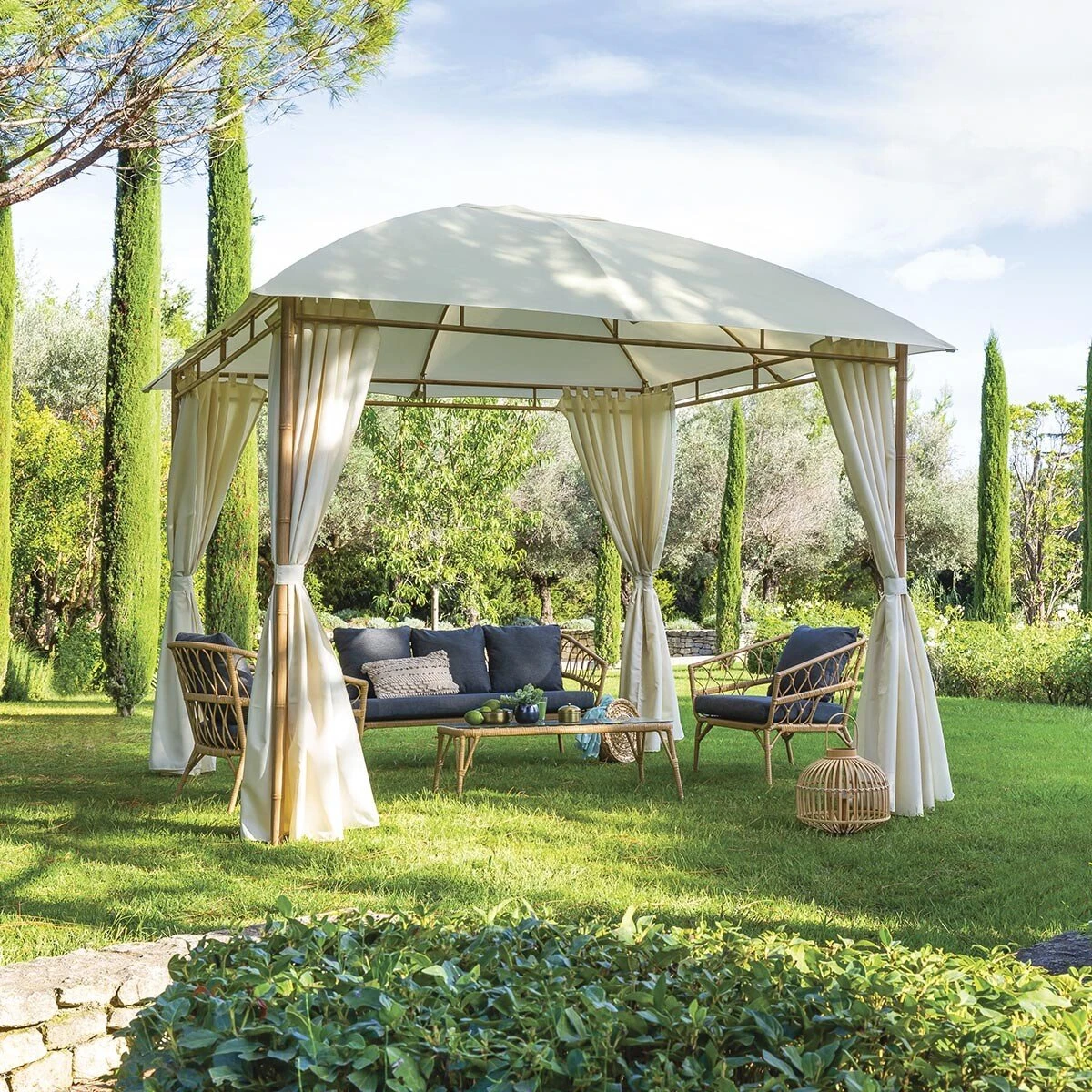 Nous vous proposons la toile de tonnelle Sawara seule (sans la structure ni les rideaux).