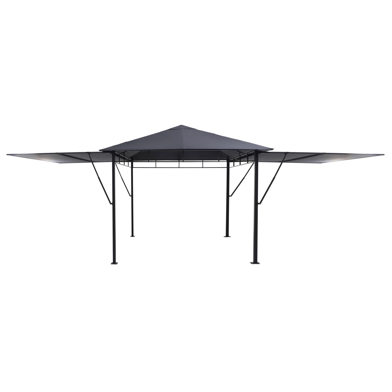 Ses dimensions 3 x 3 m, vous permettront de l’installer dans les plus petits espaces mais en cas de besoin ses deux auvents vous donnent la possibilité d’agrandir la surface sous la tonnelle.