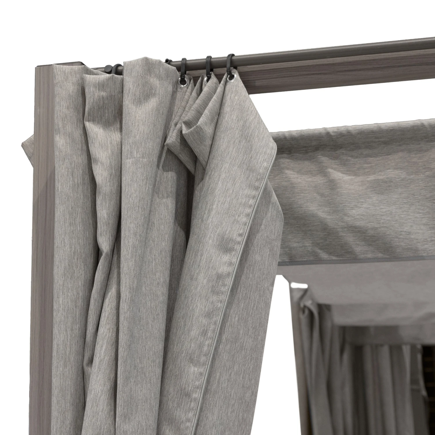 La toile traitĂ©e dĂ©perlant coulisse sur la structure vous permettant ainsi de choisir en fonction de l’ensoleillement d’ouvrir ou de couvrir votre tonnelle. En cas d’intempĂ©ries, repliez la toile pour la protĂ©ger.