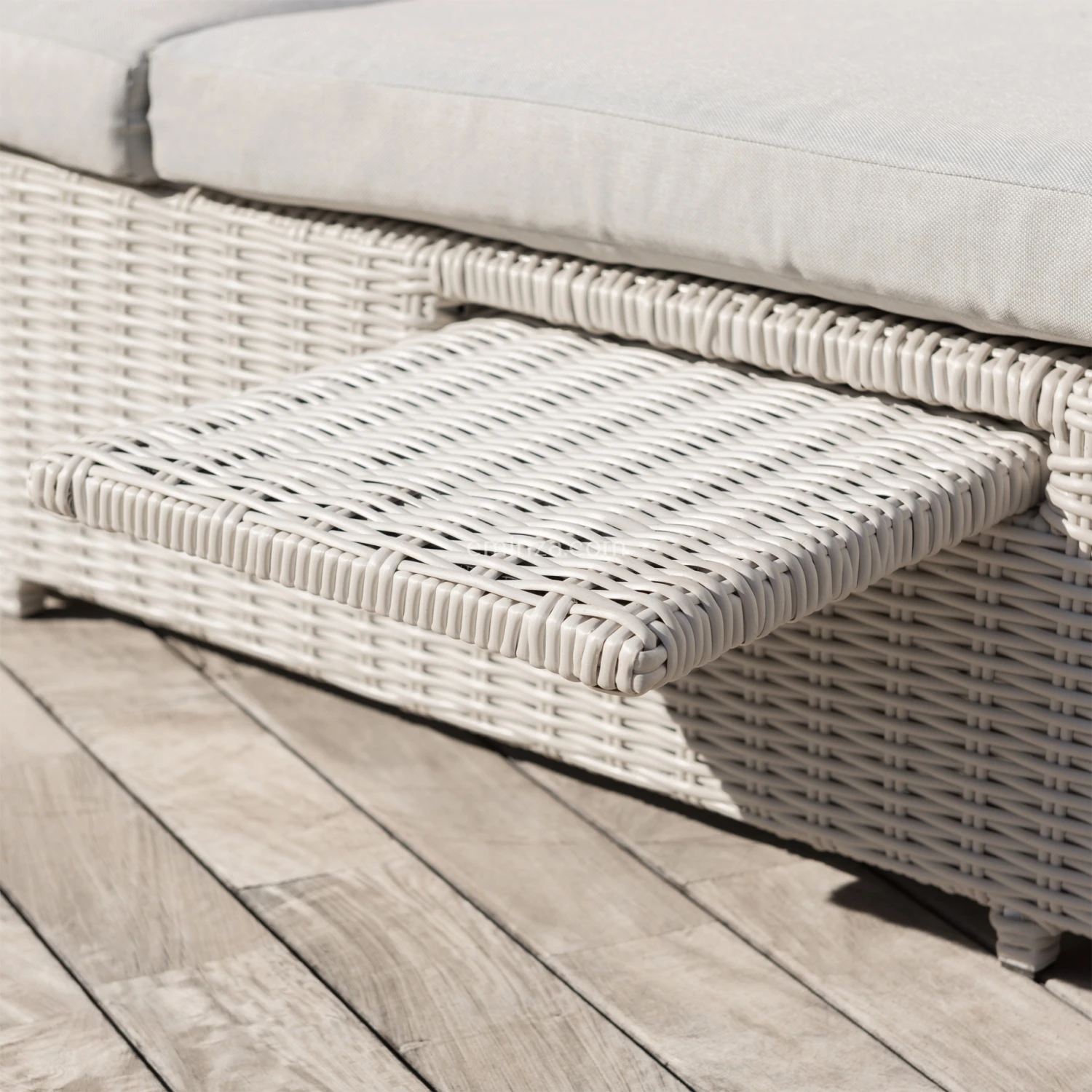 Le plus produit : Une grande qualité de conception ! Sa structure en aluminium traité époxy est garantie antirouille et ses finitions en résine tressée demi-lune lui offrent une résistance optimale aux rayons UV.